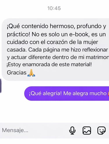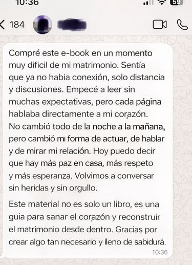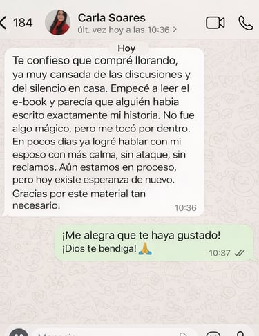 Hoy, después de algunos años, puedo decir que vivo un matrimonio restaurado, consciente y fortalecido — no perfecto, pero real, maduro e intencional. Creé este e-book con el propósito de ayudar a mujeres que se encuentran donde un día yo estuve, mostrando que existe camino, sanidad y un nuevo comienzo.