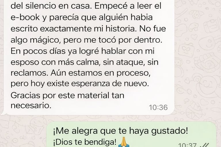 Sí. El contenido fue creado especialmente para mujeres que están viviendo distanciamiento, discusiones constantes o silencio en la relación. Incluye orientaciones prácticas y reflexiones profundas para iniciar el cambio, comenzando por ti.