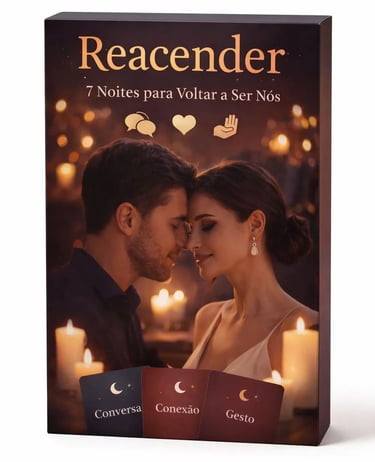 Reacender e um jogo que gera conexão emocional, o flerte, o desejo e a intimidade sem pressão, sem pornografia e sem constrangimento. É um jogo pra casal que quer voltar a se olhar com vontade.