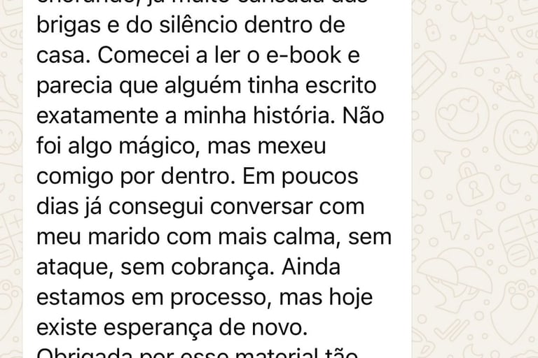 ▶️ Um caminho emocional seguro para sair do ciclo de brigas, silêncio e mágoas guardadas, sem precisar implorar por atenção, discutir todos os dias ou carregar culpa por sentir vontade de desistir.