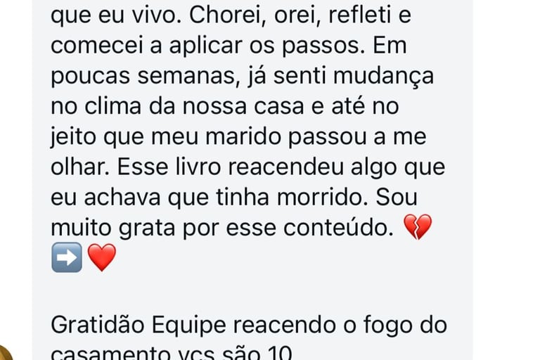 Foi a partir desse lugar de dor, busca a reconstrução que decidi estudar, ler e me aprofundar. Ao longo dos anos, busquei conhecimento por meio de livros, estudos e aprendizados com profissionais da área emocional, conjugal e espiritual. Esse processo transformou não apenas meu casamento, mas também a mim como mulher.